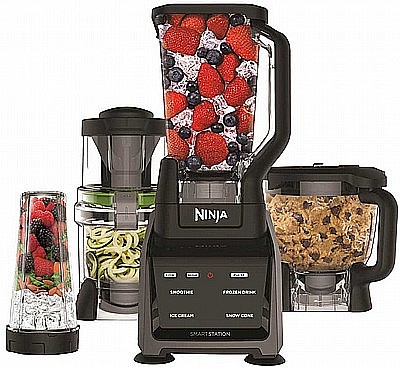 מעבד מזון נינג’ה משולב עם בלנדר שייקר וספירולייזר מקצועיים לעיבוד מזון ולהכנת משקאות ושייקים בריאים, ממרחים ורטבים, מחיות לתינוקות ואוכל בריא לכל המשפחה.