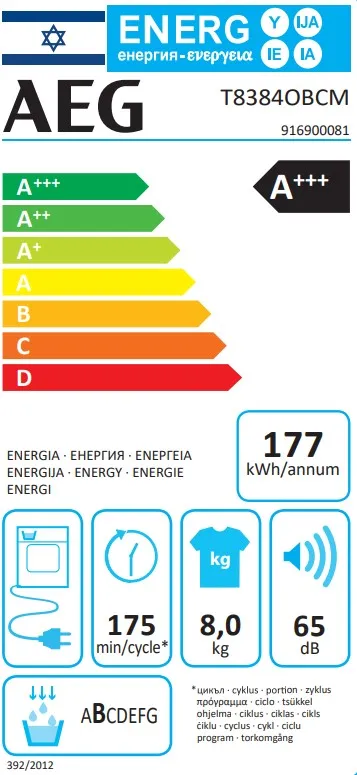מייבש כביסה 8 ק"ג דגם AEG T8384OBCM