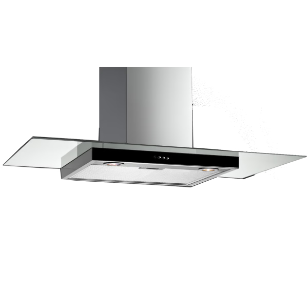 קולט האדים turboair Iris בשילוב נירוסטה וזכוכית ובעל פאנל קידמי עשוי זכוכית כולל לחצי הפעלה.