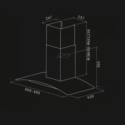 קולט אדים טורבואייר ארובה IRIS IX/BL/A/60 יוקרתי תוצרת איטליה (turboair Iris IX/BL/A/60 ) דגם איריס רוחב 60 ס"מ.